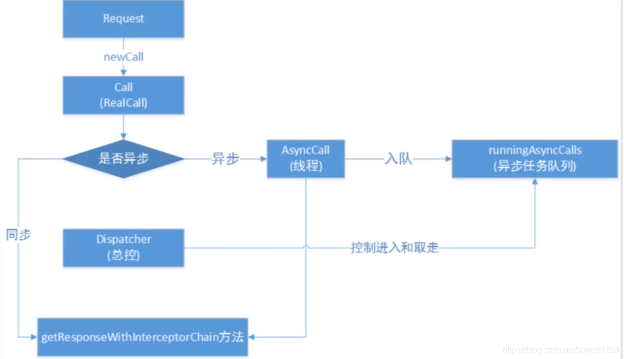 由此,我们可以看到同步的请求会被放到一个队列之中。在这里先简单讲解一下Dispatcher